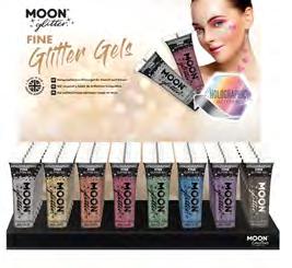 Housed in sleek, modern acrylic display units with a dark base to enhance the glow effect, the kit includes 8 displays as well as a cardboard floor standing unit to hold them. Each product is formulated for smooth application, vibrant color payoff, and long-lasting wear, making it perfect for festivals, club nights, performances, and creative makeup looks.