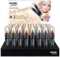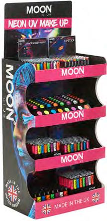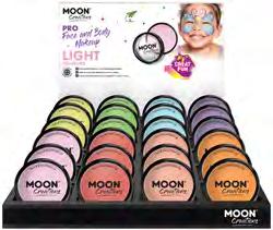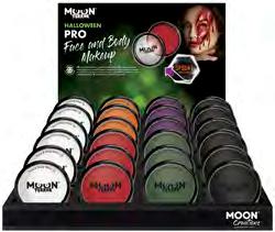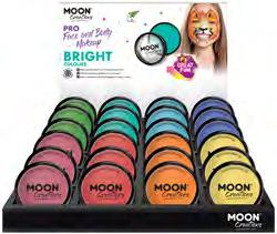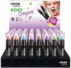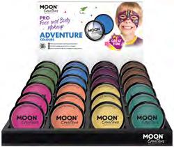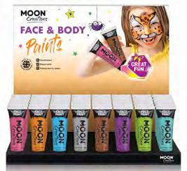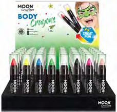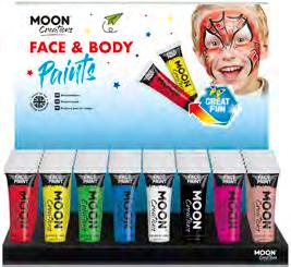 The display includes face & body crayons, water-activated colors in a wide range of colours, paint tubes, brushes and sponges.