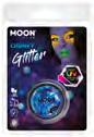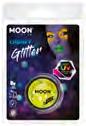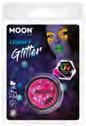 A vibrant retail makeup kit featuring a dazzling collection of neon UV reactive glitter products, designed to sparkle in daylight and glow intensely under ultraviolet light. The kit includes ultra-fine and chunky UV glitters in bold neon shades such as electric pink, neon green, bright yellow, fiery orange, and luminous purple, perfect for eyes, face, body, and hair accents.
