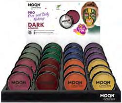 Pro Cake Pots are water activated and available in 40 highly pigmented colours, staples for any face and body painting endeavor. All 40 colours are distributed between five acrylic display units. Our premium quality face paints offer smooth application and are gentle on the skin. The long-lasting formula provides excellent coverage, without cracking or flaking. Each unit contains 36g of 100% vegan face paint.