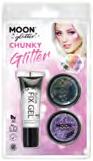 Unleash multidimensional sparkle with this kit, designed to deliver eye-catching shine from every angle. Moon Glitter transforms any look with a futuristic, prismatic finish that dazzles under both natural and artificial light.