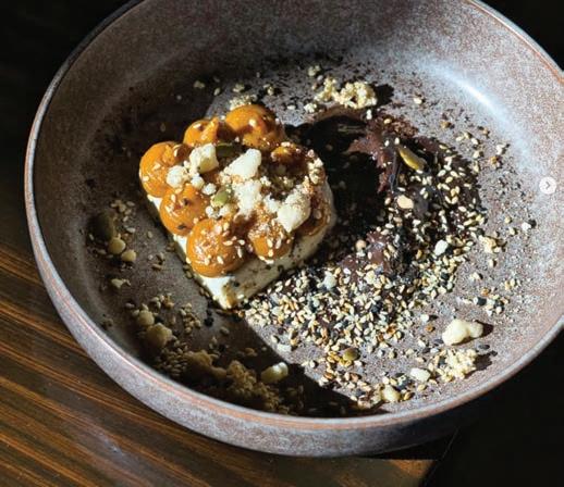 Jubinville’s recipe starts with a base of pineapple, black garlic, red Fresno chile, cilantro stems, Kaffir lime leaf and miso. Those ingredients are fermented for about five days in a precisely made brine of salt and water. The salsa is then topped with a drizzle of aromatic oil and fried quinoa crunch.