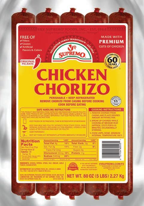 V&V Supremo Foods. This award-winning producer of authentic Hispanic-style cheeses is your source for melting cheeses like Chihuahua® Brand Quesadilla; fresh cheeses such as Queso Fresco, Queso Blanco Del Caribe®, Queso Enchilado, Queso Asadero and Requeson; aged cheeses like Cotija; and Mexican crema. Chorizo in beef, pork, and chicken varieties also available. 1-888-887-8773; vvsupremo.com