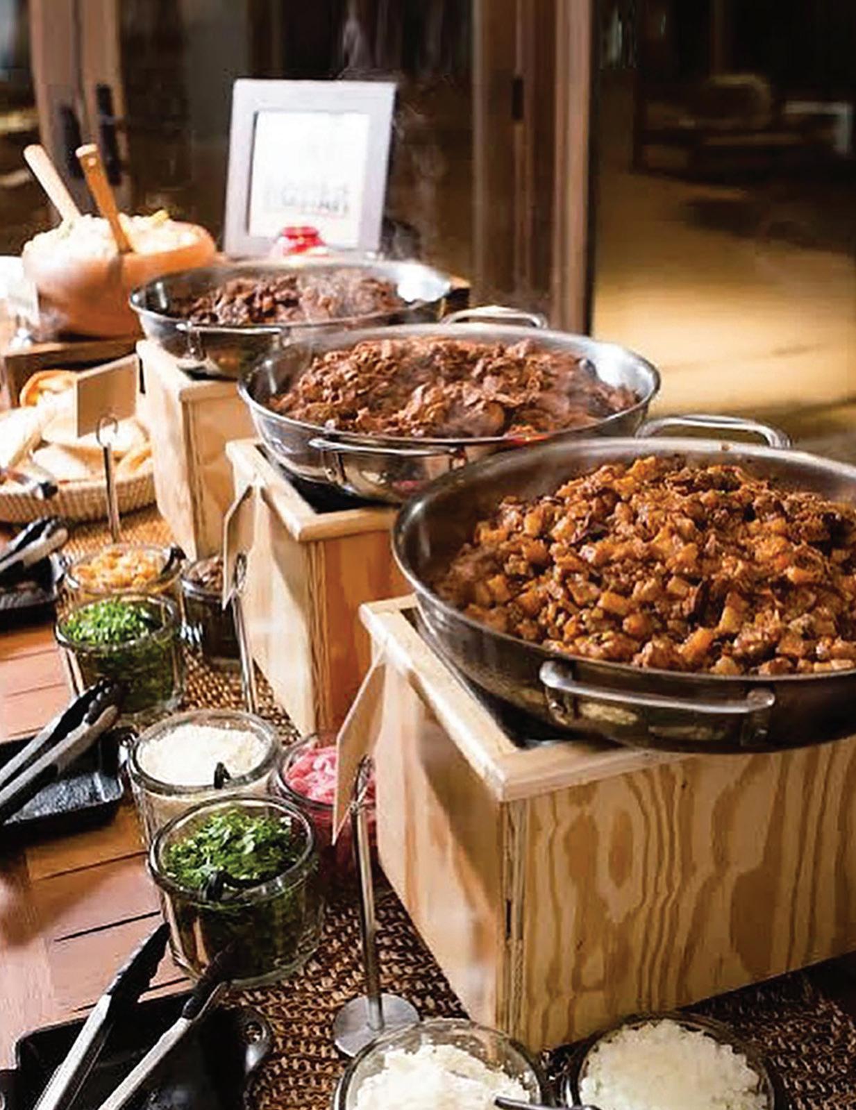 Second, with that in mind, it is important to focus on the menu items that work best for catering — that is, those that hold and travel well. You might want to promote the items that are your most popular onpremise, but if those items don’t hold up well in catering it will do more harm than good. As I mentioned, while tacos do not travel well, we find that build your own tacos work well for catering: fillings and soft tortillas can be held hot and served in chafing dishes, with an array of toppings, salsas, etc. on the side. Crisp fried appetizers (empanadas, flautas, taquitos) work better than quesadillas.