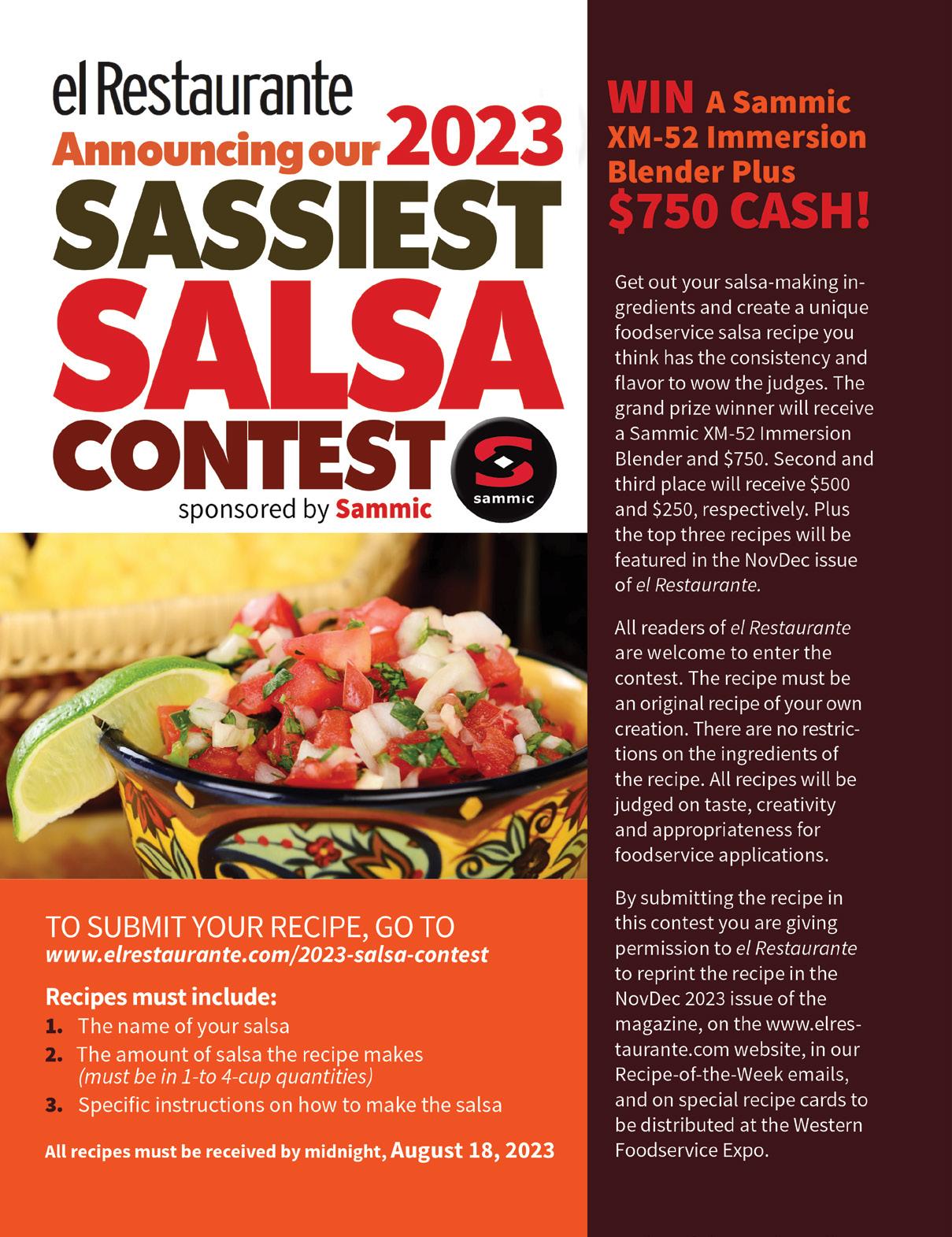 There’s still time to enter el Restaurante’s Sassiest Salsa Contest, sponsored by Sammic, and to nominate your manager for the our Manager of the Year Award, sponsored by Jarritos. Winners will receive cash prizes and framed certificates, and will be featured in the November/December 2023 issue of el Restaurante.