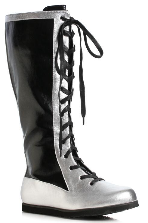 The 119-macho with side zipper and front laces is great for wrestling costumes and cosplay; available in red and silver in sizes Small (8-9), Medium (10-11), Large (12-13).