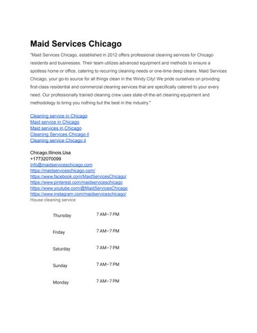 https://maidserviceschicago.com/ https://www.facebook.com/MaidServicesChicago/ https://www.pinterest.com/maidserviceschicago https://www.youtube.com/@MaidServicesChicago https://www.instagram.com/maidserviceschicago/ House cleaning service