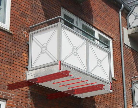 Udkragede armerede betonaltaner har indstøbte armeringsjern, som er ført ud i altanpladen fra etagedækket.