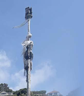 The top of the cell phone tower that was destroyed by fire this week. Photo: Greg Hyland.