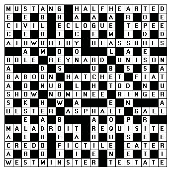 55. Wrath (5) 56. Living in water (7) 57. Additional (5) 58. Trial run(vehicle) (4,5) 59. Principle church of diocese (9)