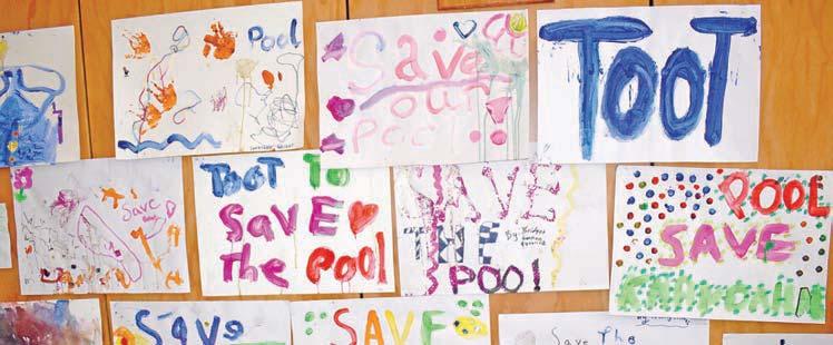 “save the Khandallah pool” artwork and writing prepared by children who want to see the pool saved.