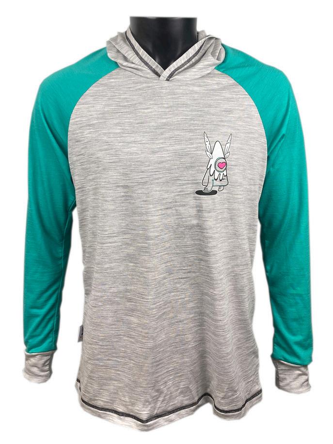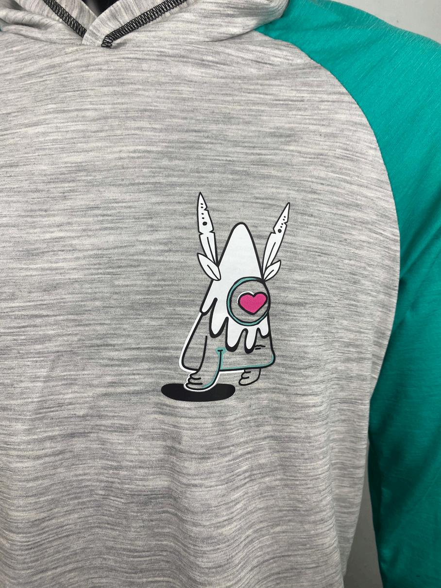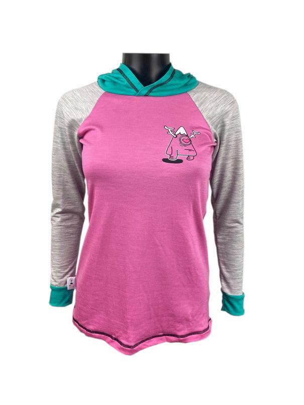 87% laine merinos, 13% nylon, 165 gsm T-shirt manches longues, capuche, raglan, coupe droite.