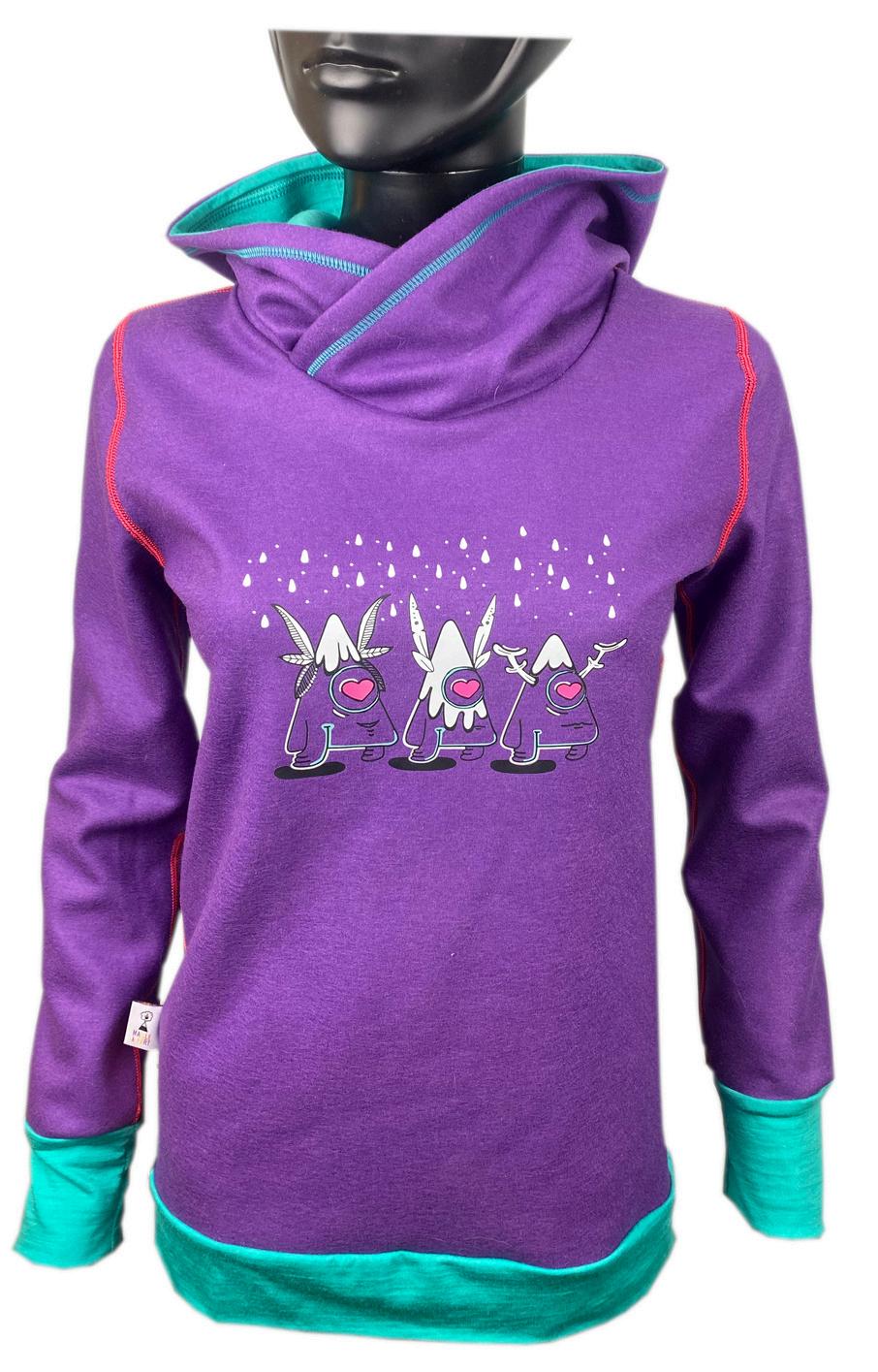 100% coton bio, col capuche montant, coupe large, coutures plates