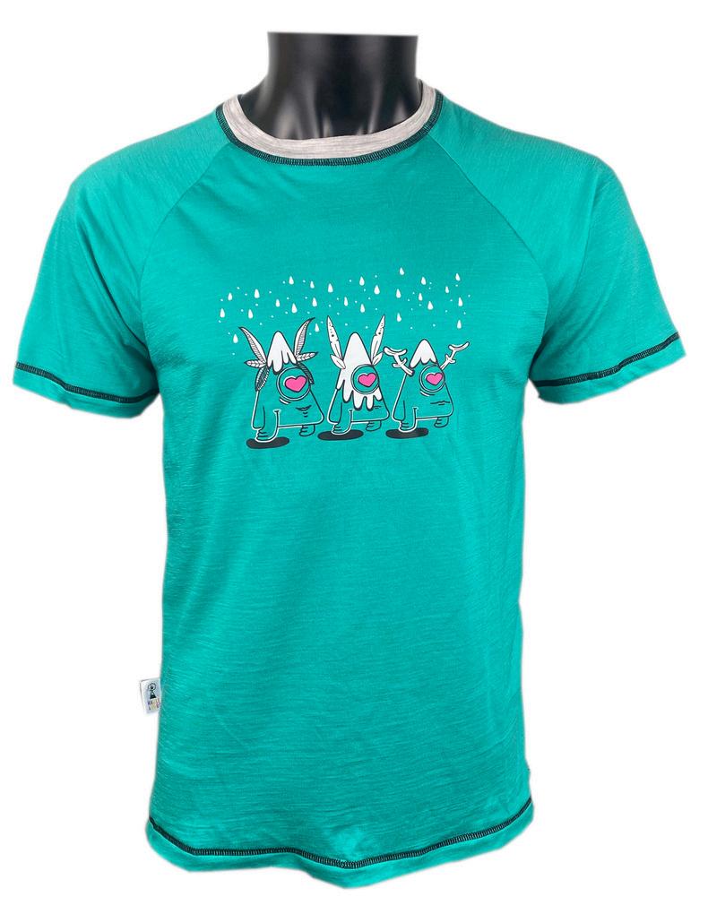 87% laine merinos, 13% nylon, 165 gsm. Tshirt manches courtes, raglan, coupe droite.