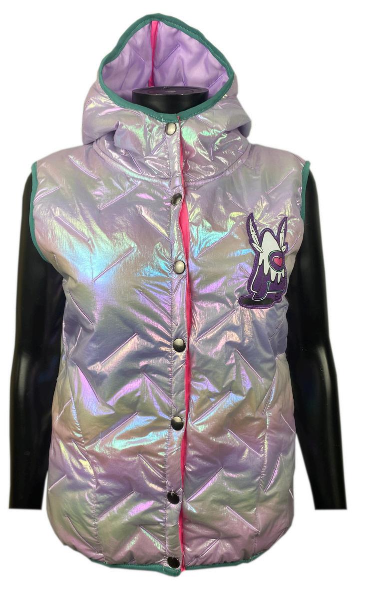 Doudoune synthétique, couleur brillante, reflets multicolores, fermeture pression, 2 poches côtén logo poitrine