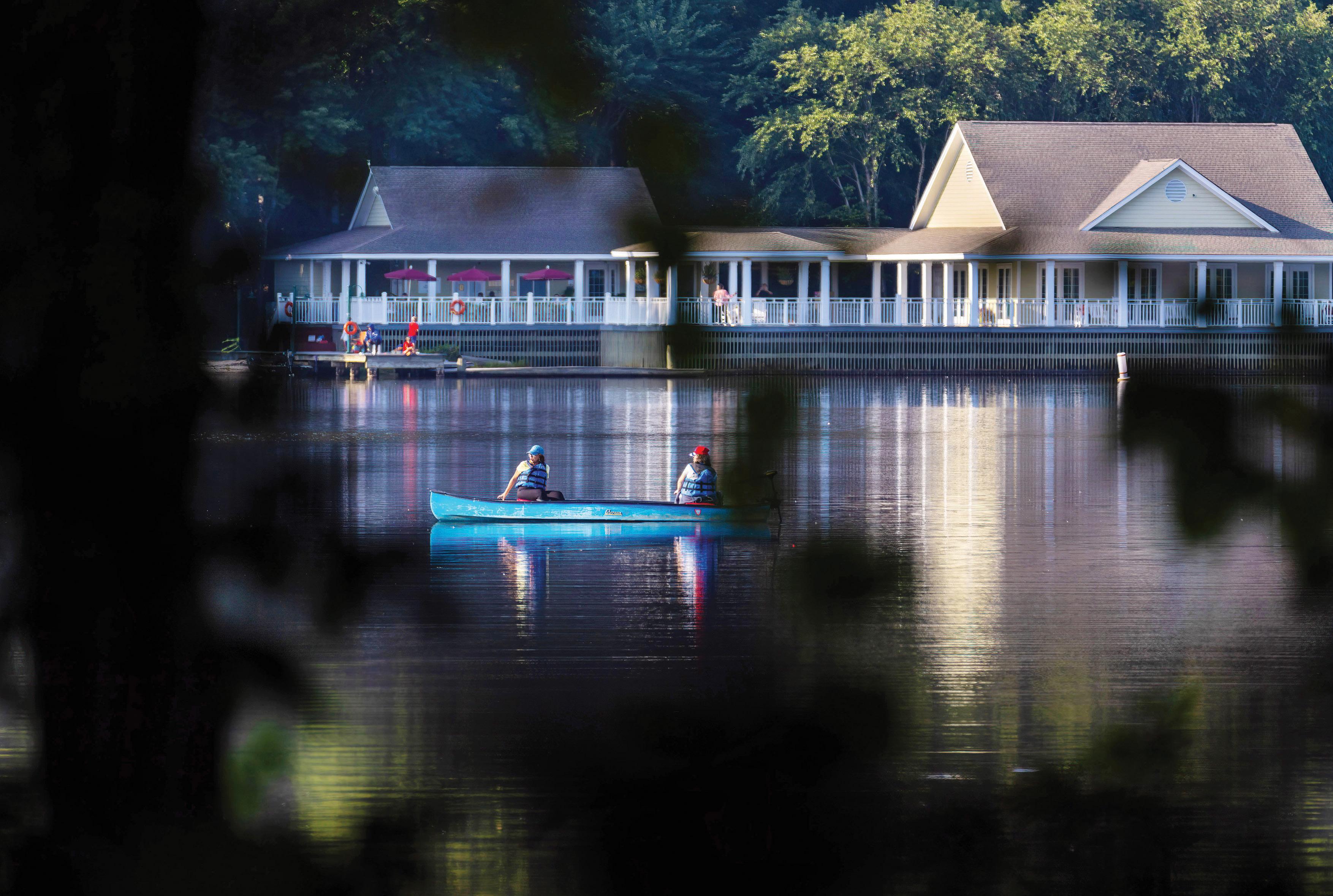 Whether boating on its calm waters or hiking its canopied trail, Bass Lake Park on a sunny afternoon makes for a tranquil retreat.