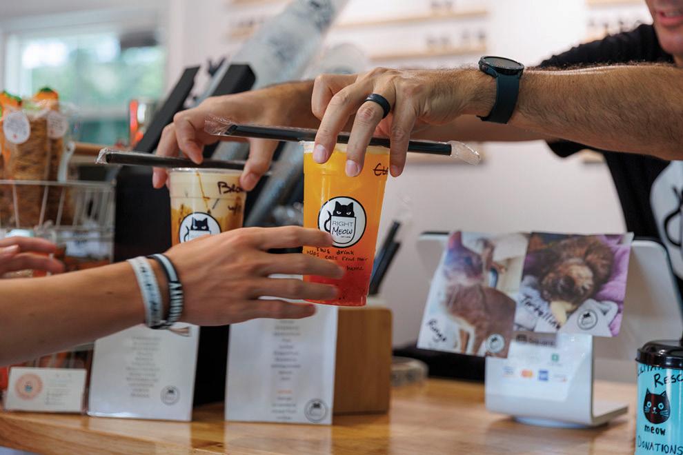 Sip on boba tea and coffee at Right Meow Cat Cafe.