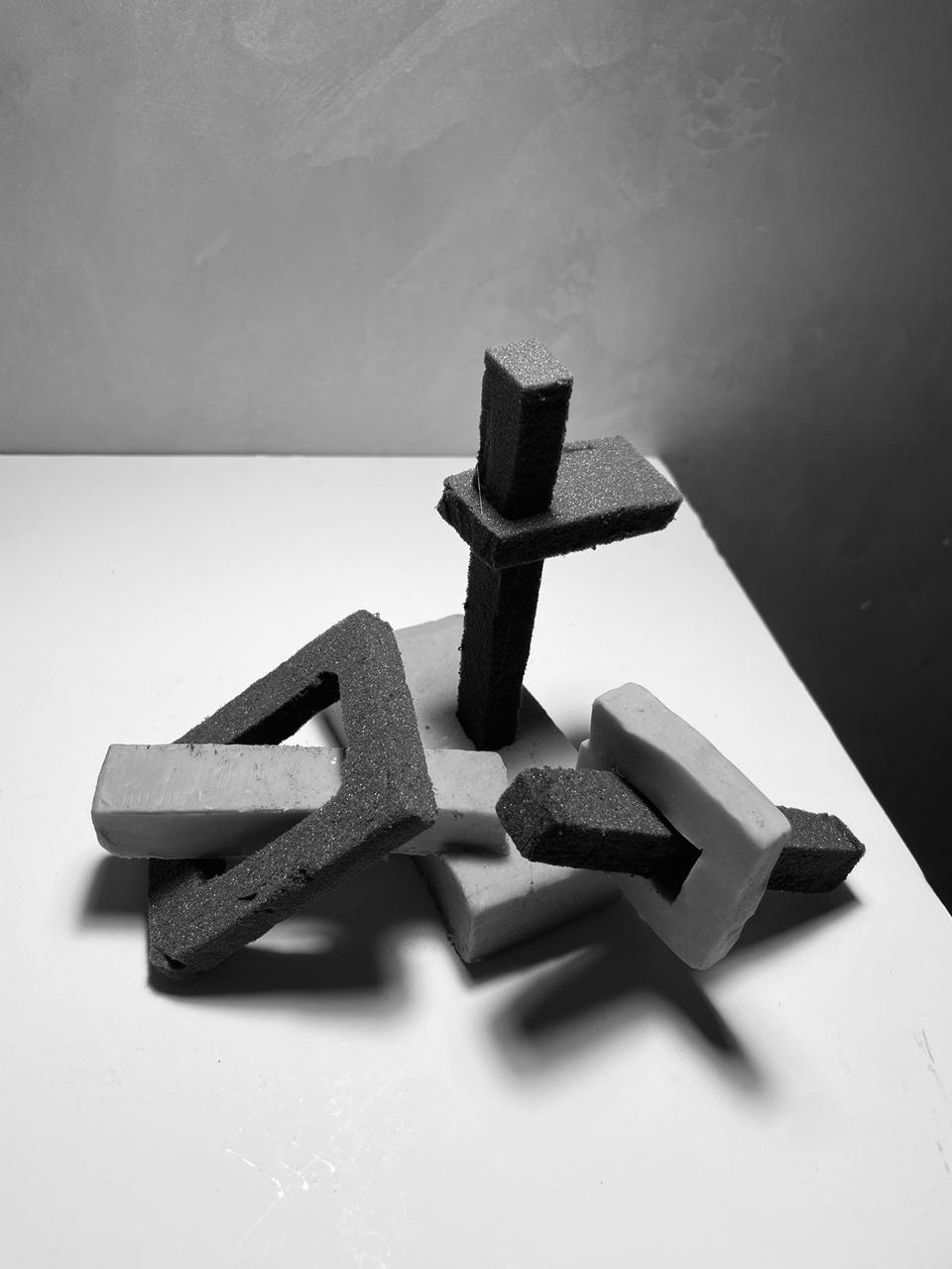 Thiswasreallydifficultatfirst, especiallysincewecouldonly usethreeshapes;itwasdifficult tobalanceanddeterminethe variousaxes.Imadeaneffortto avoidhavingthesameshapesin everymodel.