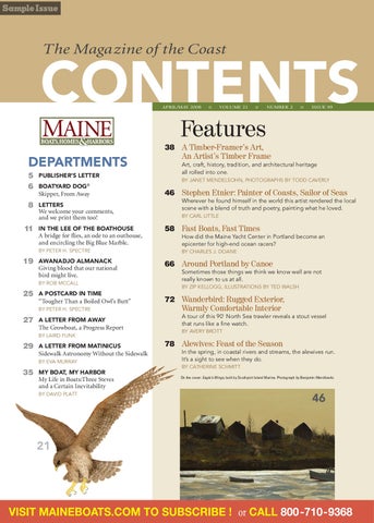 78 Alewives: Feast of the Season In the spring, in coastal rivers and streams, the alewives run. It’s a sight to see when they do. BY CATHERINE SCHMITT On the cover: Eagle’s Wings, built by Southport Island Marine. Photograph by Benjamin Mendlowitz.