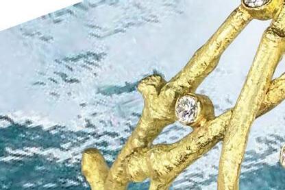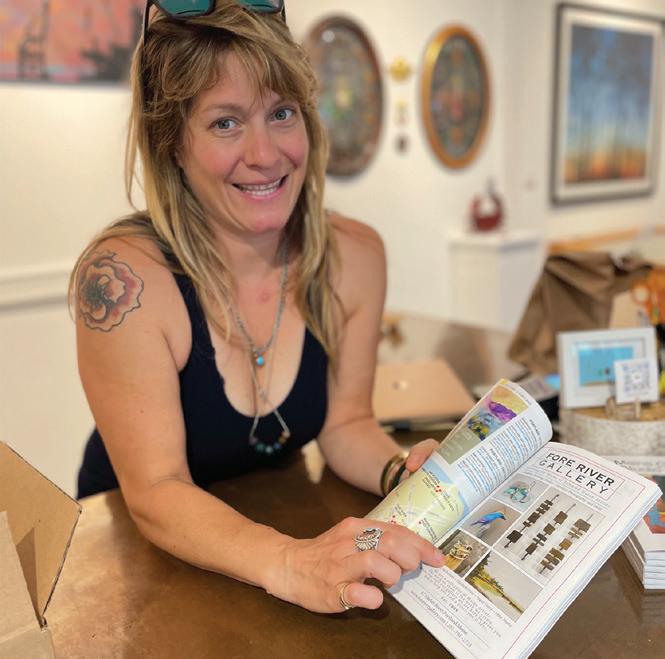 Tegan Curry is a designer, maker, and gallery artist at Fore River Gallery in the Old Port. Here, she’s browsing the jewelry shown in their Maine Gallery & Studio Guide ad. Fore River Gallery has five uniquely talented artists, beautiful art, jewelry, small sculptures, and gifts.