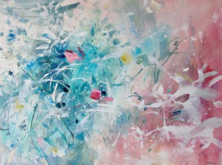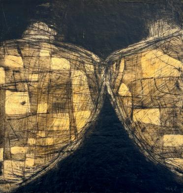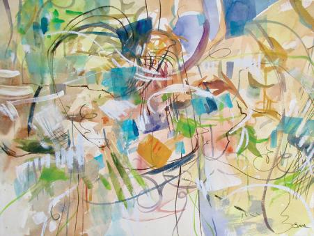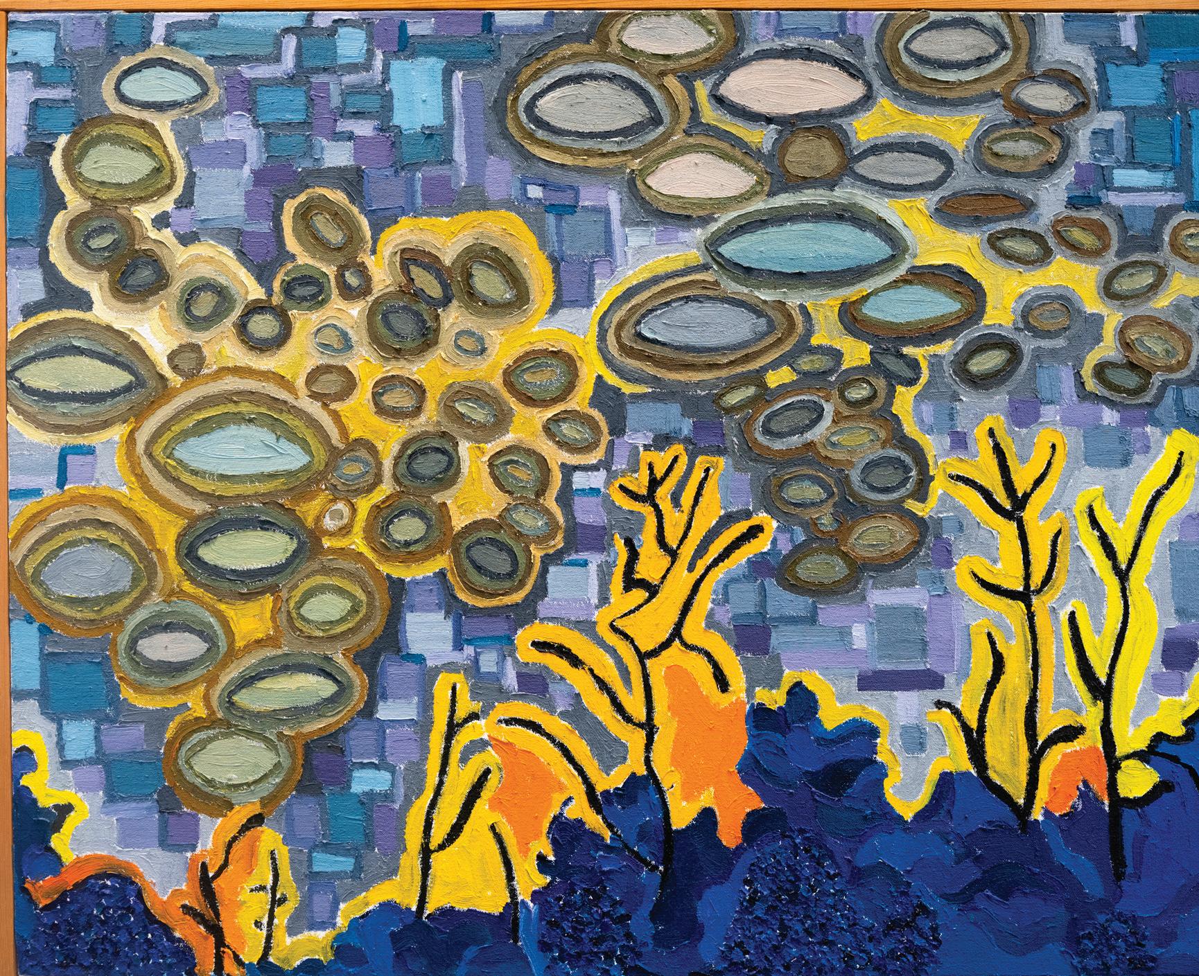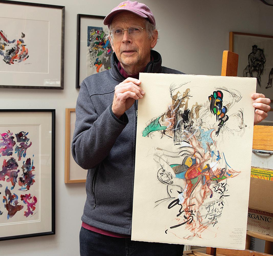 During the pandemic, author/ artist David Little revisited his earlier style of abstraction. These lyrical mixed media works and collages may be seen at his studio and by appointment. photo: Cindy Barnard