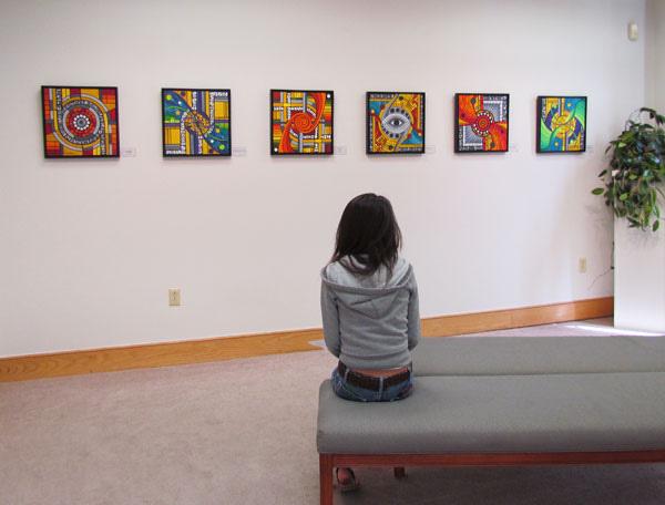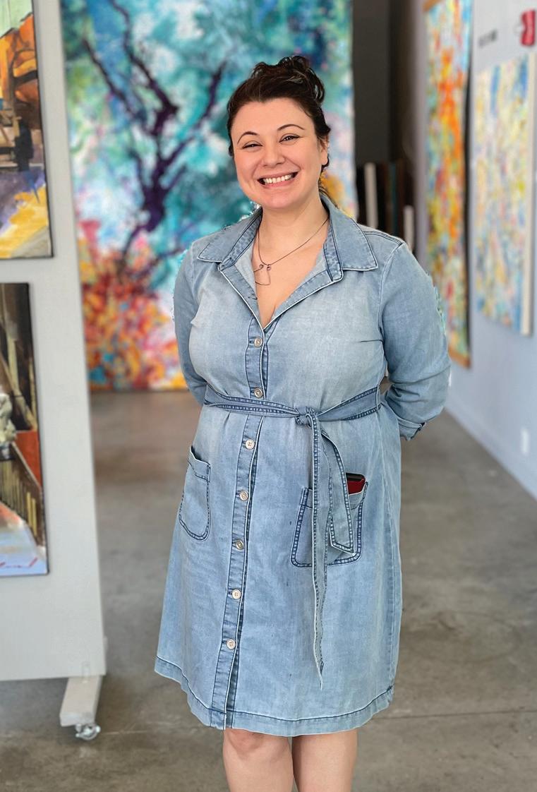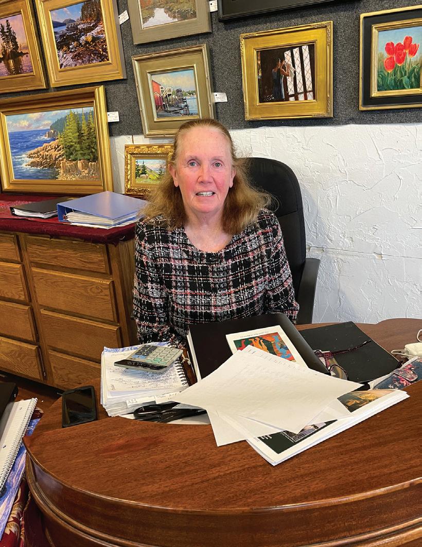 Lauren Donovan is standing by to welcome guests to Moss Galleries during the “Lynne Drexler: All The Decades” showing last summer.