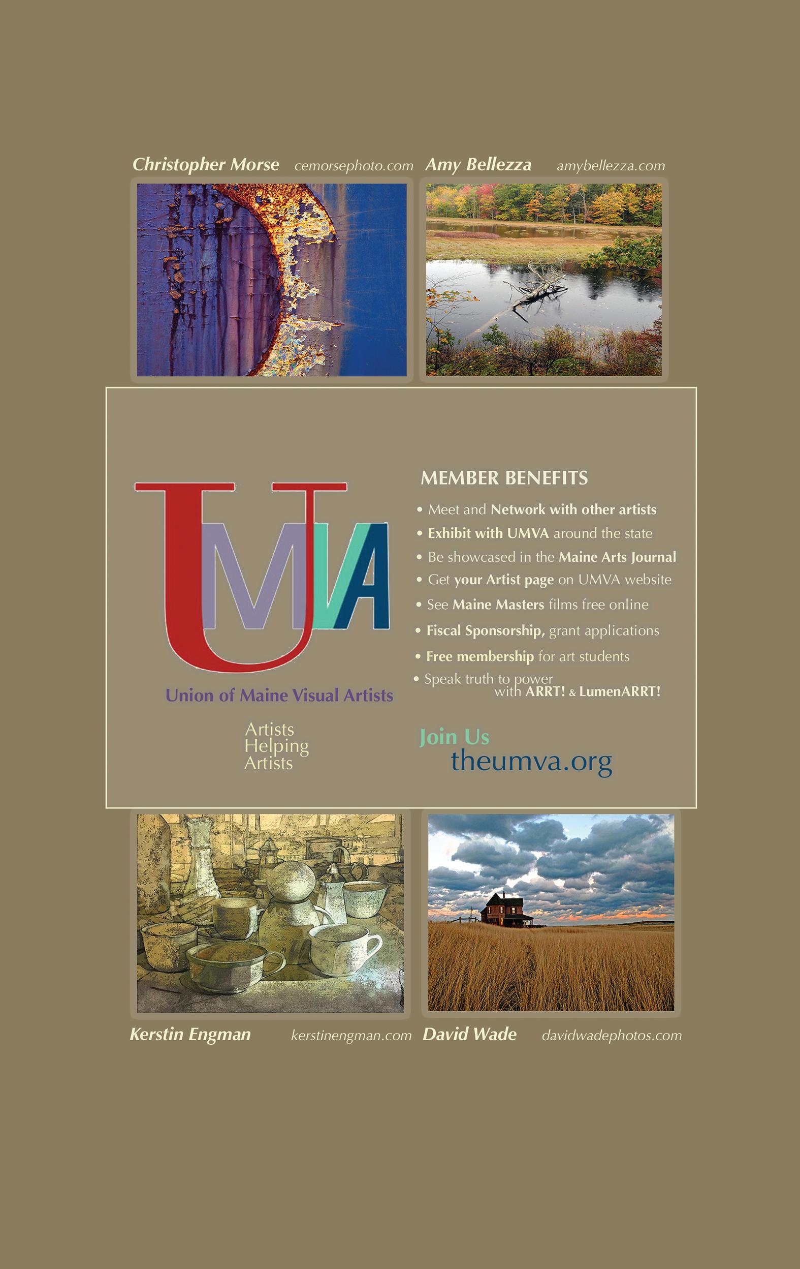 UNION OF MAINE VISUAL ARTISTS umvawebsite@gmail.com www.theumva.org (see ad pages 16,17 & 18)