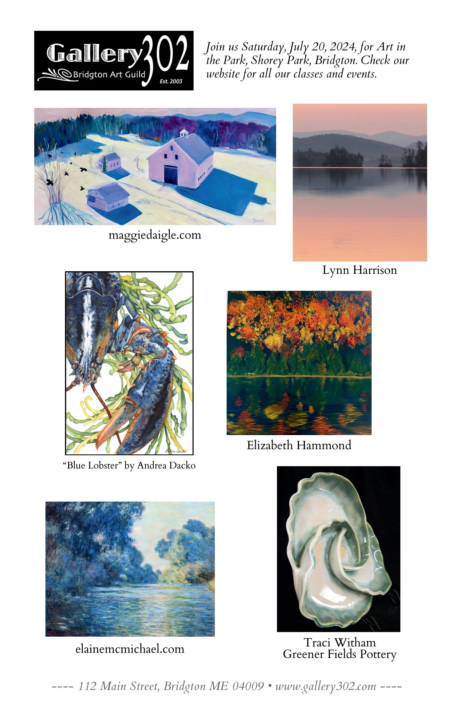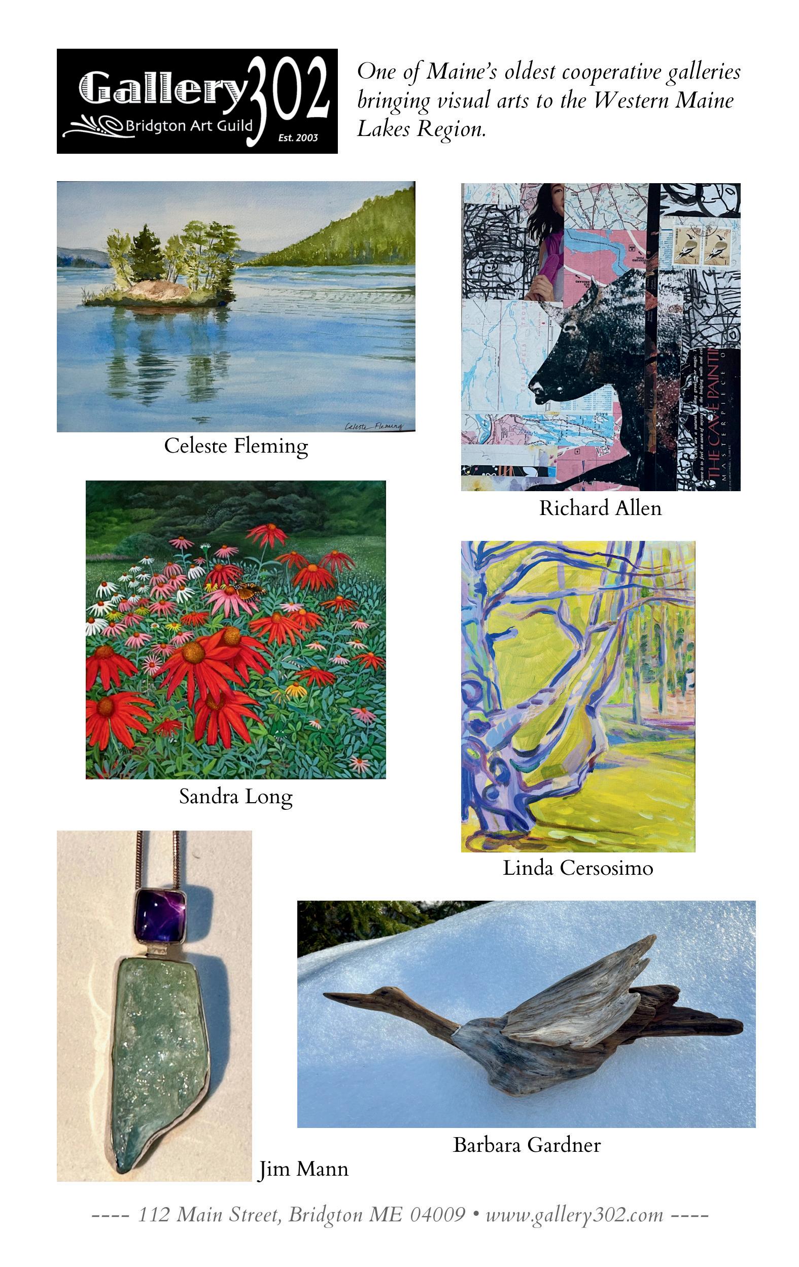 Meetinghouse Arts, located at 40 Main Street in Freeport, is a non-profit arts and cultural center. The gallery is celebrating its third season and represents over 90 Maine artists working in a variety of mediums. A full schedule of shows planned for 2024 includes “Seacoast Maine,” kicking off the summer season with work reflecting the Maine waterfront and coastline.