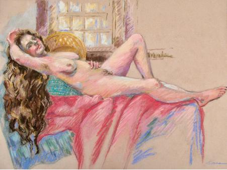 Beatrice Whitney Van Ness (1988-1981) received her formal art education from the School of the Museum of Fine Arts (SMFA) in Boston, where she studied with Impressionists Frank Benson and Edmund Tarbell. It was during this time that she began developing her own Impressionist style with single nude figures rendered in oil paints. This early work would later give way to portrayals of families and small groups, with a special focus on the qualities of light.