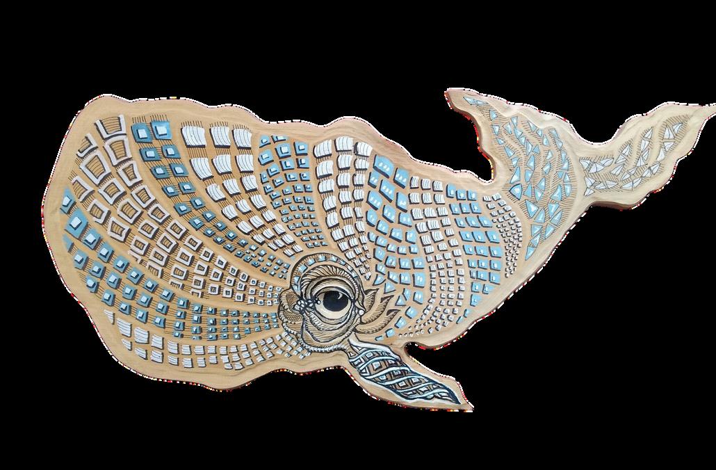 1. EYE OF THE WHALE Whimsical Wood Wall Whales created from reclaimed scrap wood • etsy.com/shop/scrimshawpenornament