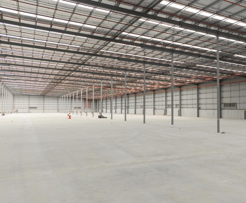 A detailed survey revealed up to 120mm of variation from the original levels. The structure consisted of a 180mm thick fibre-reinforced concrete slab, a steel portal frame, precast concrete dado panels, and perimeter/internal pad footings. Geotechnical investigations indicated the platform was built on up to 8m of imported fill.