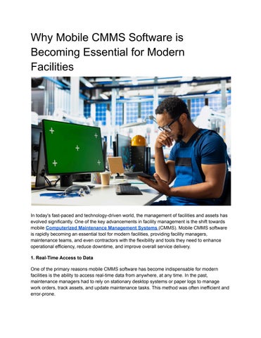 In today's fast-paced and technology-driven world, the management of facilities and assets has evolved significantly. One of the key advancements in facility management is the shift towards mobile Computerized Maintenance Management Systems (CMMS) Mobile CMMS software is rapidly becoming an essential tool for modern facilities, providing facility managers, maintenance teams, and even contractors with the flexibility and tools they need to enhance operational efficiency, reduce downtime, and improve overall service delivery