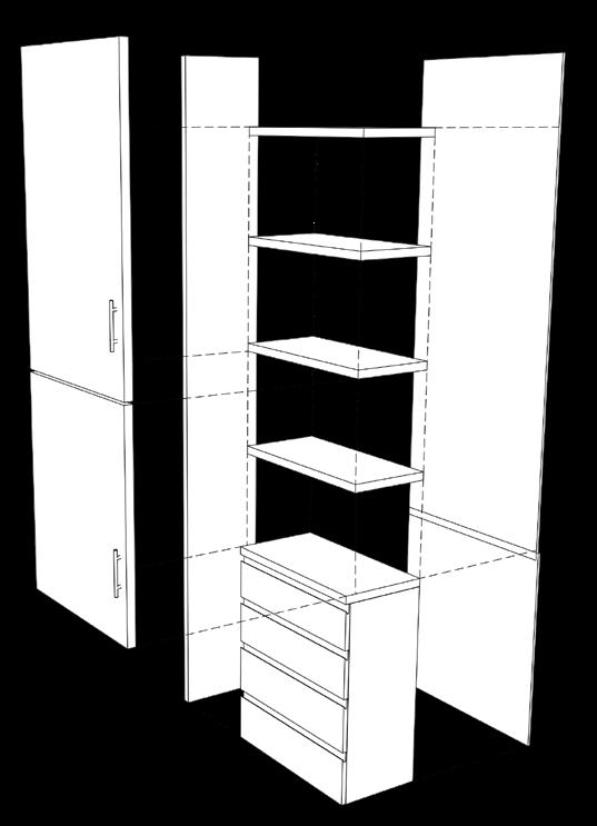 Referencia Panel trasero Panel lateral Estante Estante interno Panel lateral Puerta Puerta Estante Panel lateral Cajón* Bisagra Cazoleta