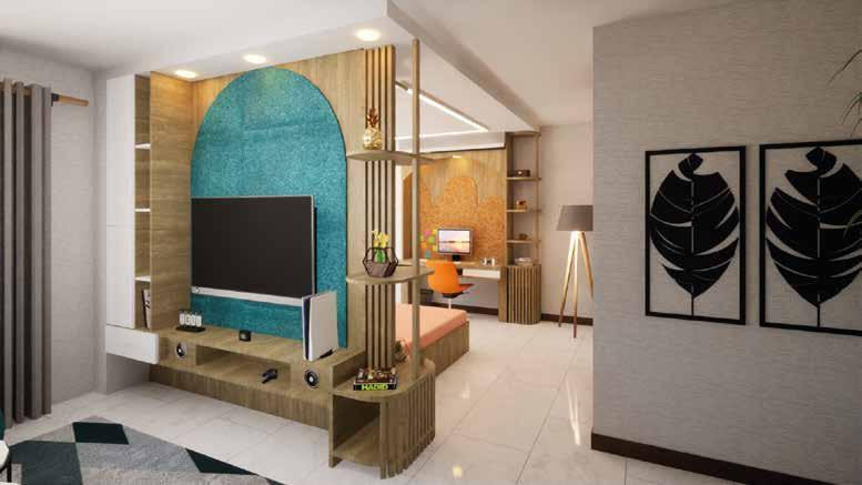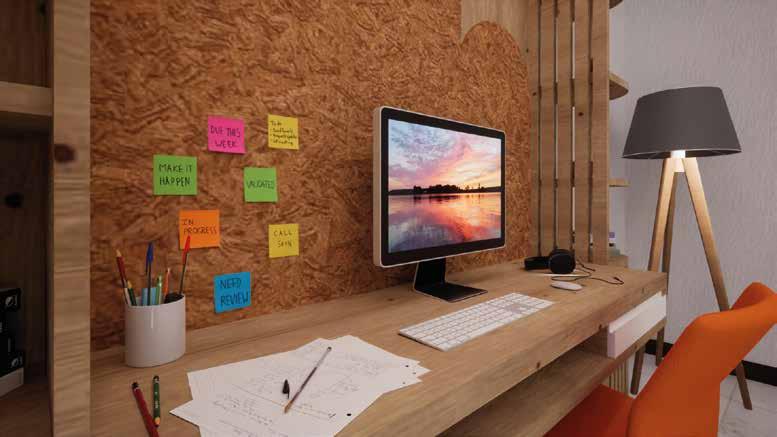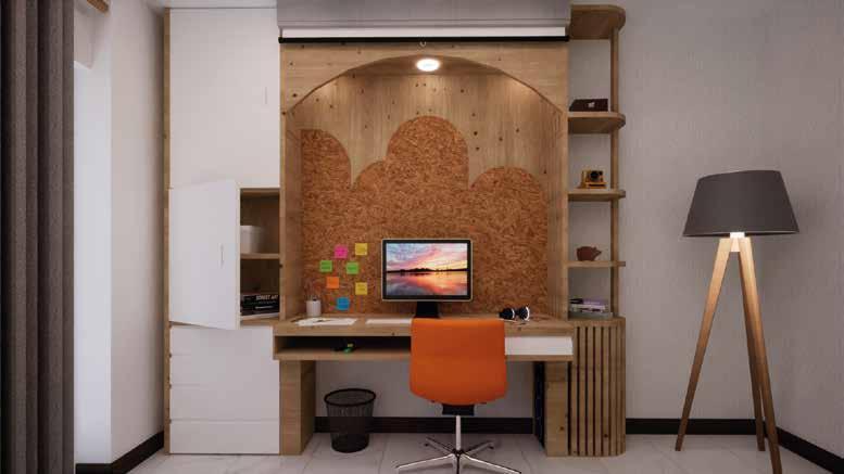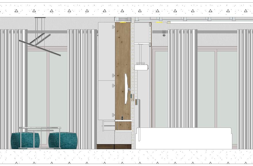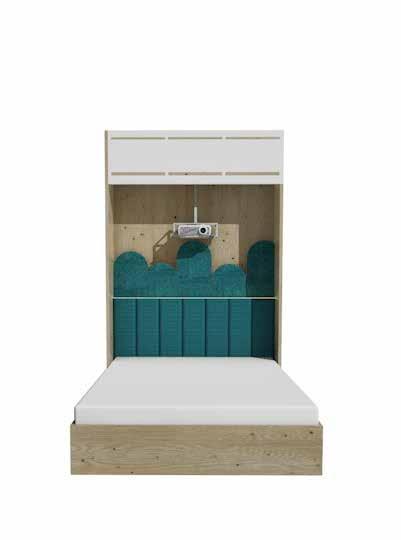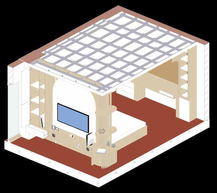La conexión eléctrica, fibra óptica y TV vienen por pared y entran al bastidor, se comunican a los artefactos mediante huecos realizados en las placas de madera.