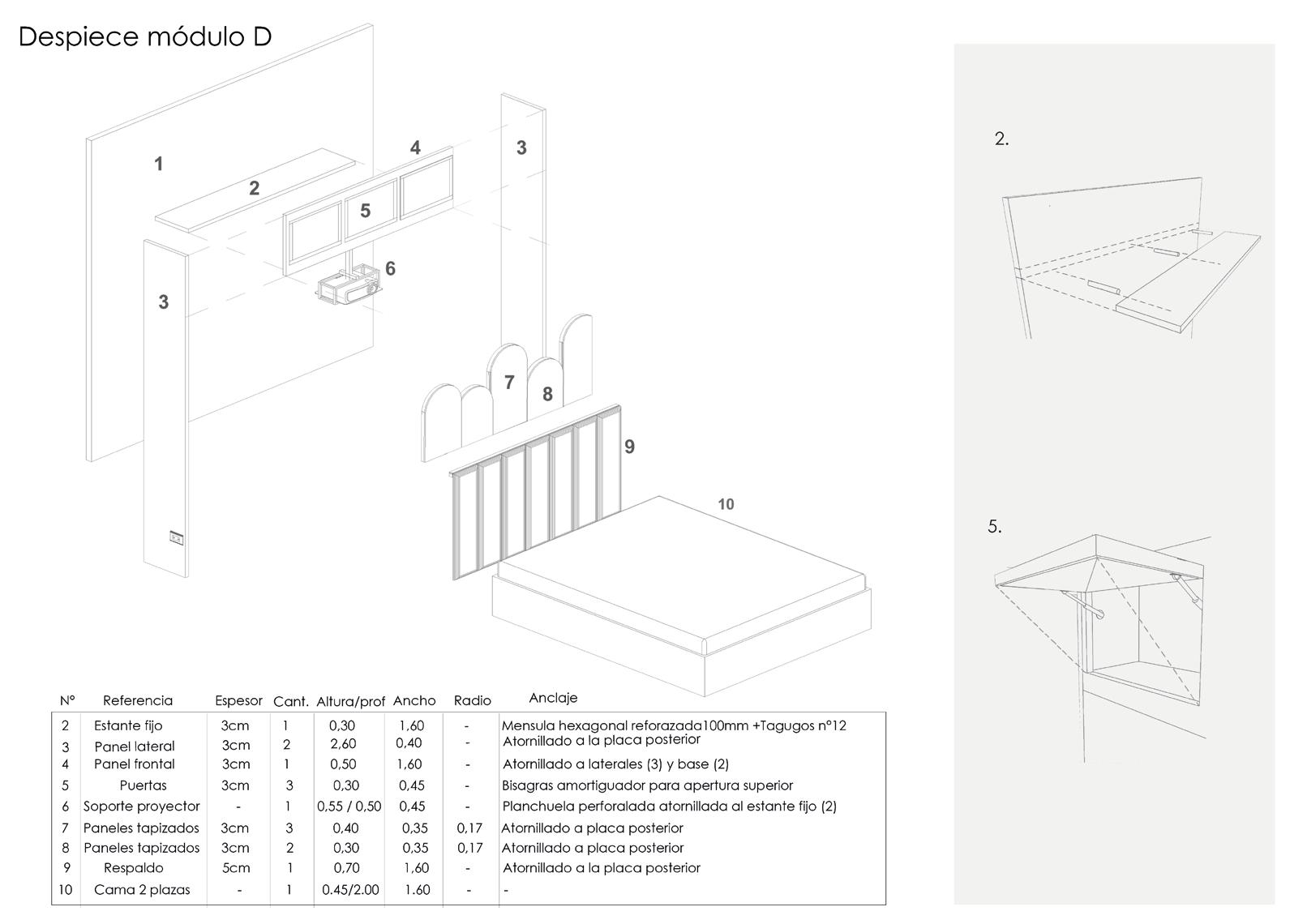 Principalmente el mueble, debe dividir el living del dormitorio, y contener de ambos lados funciones especificas. Se extiende la