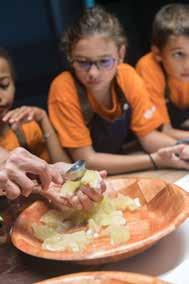Lors du troisième atelier, les juniors ont réalisé leurs premières recettes avec le chef Gabriel Levionnois : riz au lait de coco, salade de fruits de saison, avec pamplemousses et bananes. Ils ont appris les différentes façons de découper les fruits et ont également reçu de nombreuses informations sur la banane. Un sirop réalisé à base d’herbes fraîches a clôturé cette séance culinaire !