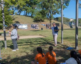 Liliane fait découvrir la richesse de l’avifaune calédonienne aux juniors.