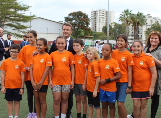 À l’occasion du déplacement d’Emmanuel Macron en NouvelleCalédonie du 24 au 28 juillet, une délégation de neuf juniors a eu le privilège de rencontrer le premier personnage de l’Etat lors d’une séquence consacrée à la jeunesse et au sport sur le terrain de football de Magenta.