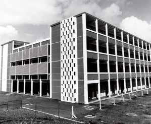 Projet du nouveau musée, appelé Musée de Nouméa, 1965, coll. Sud Pacific La façade aveugle est faite de pleins et de vides pour initier des jeux d’ombre.