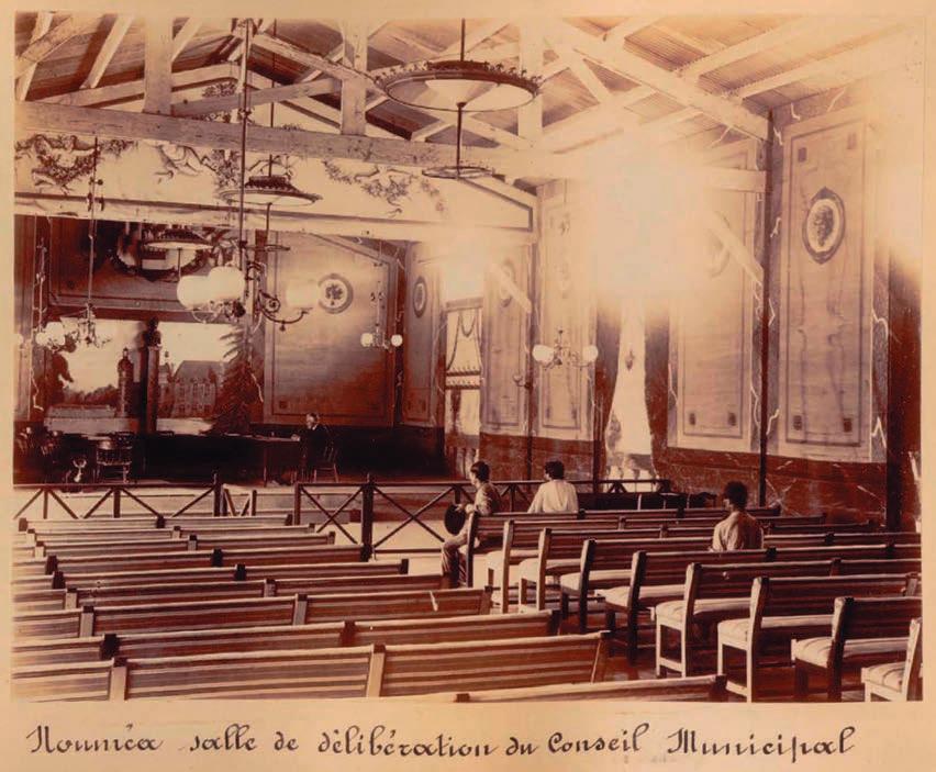 « Se posait d’abord le choix du site pour construire la mairie. La discussion porta sur 2 lieux : celui où se trouve actuellement le Musée de la Nouvelle-Calédonie à la Baie de la Moselle qui n’était pas encore totalement remblayée et, là où est l’actuelle mairie et où se trouvait alors l’école Suzanne Russier. On choisit l’école des filles…» Jean Lèques