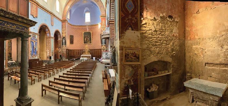 Mosaïque en pâte de verre réalisée par Frédérique Duran sur la façade de la Poste. eil-de-bœufO central situé sur le haut de la maison à gauche de la chapelle Saint-Eutrope.