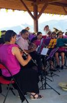 Dimanche 25 juin Scionzier accueillait le 185e Festival des musiques du Faucigny. Après l’effervescence de la matinée, les harmonies se sont déplacées l’après-midi dans les communes voisines pour donner des aubades. Tandis que L’Echo du lac Bénit s’en allait enchanter Romme-sur –Cluses, Mont-Saxonnex a reçu les musiciens de La Roche, Taninges et Bonneville qui se sont succédé pour trois concerts sur la place de la mairie. Malgré la chaleur et une fatigue qui commençaient à poindre, la journée s’étirant en longueur, les musiciens ont offert le meilleur de leur répertoire et un programme très varié, des standards plus classiques aux airs plus contemporains. En clôture, l’Echo de l’Arve (Bonneville) a donné envie à certains de se dégourdir les jambes et de se lancer dans une chorégraphie des plus improvisées sur le mode disco des années 70 et les rythmes de Y.M.C.A des Village People.