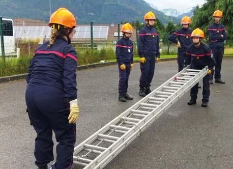 Quand d’autres préfèrent faire relâche le samedi matin et s’accorder une pause, les jeunes engagés dans la formation « jeune sapeur-pompier » sont à l’exercice, de 8h à 12h, au Centre d’intervention et de secours de Marnaz-Scionzier. Samedi 15 juin, avec leurs encadrants, ils étaient en pleine préparation d’une parade programmée le 13 juillet au soir à Marnaz et le lendemain 14 juillet à Scionzier. Mais leur prestation ne se limitera pas au seul défilé. « Après cela, il est prévu quelques démonstrations techniques avec manipulation d’échelles, pyramides et autres exercices », explique Gilles Boisier, aujourd’hui chef de centre des pompiers de Marnaz, après avoir été longtemps vice-président des JSP. La matinée se déroule en exercices un peu répétitifs mais il faut en passer par là pour arriver à cette perfection qu’on attend d’eux. Et ils se doivent d’être parfaits ! Ce matin-là, leurs formateurs les observent de près, attentifs au moindre détail, qui peut-être échapperait au grand public. Mais la rigueur est de mise : l’ à - peu - près n’y a pas sa place. Présidée par le sergent Paul Bazin, la section des JSP, rattachée à l’Union départementale des sapeurs-pompiers de la Haute-Savoie (UDSP 74), compte 21 jeunes âgés de 11 à 17 ans. « Avoir une section JSP au Centre, cela me tient à cœur, et c’est une mission agréable que de former ces jeunes », confiait Gilles Boisier. Les formateurs sont souvent passés eux-mêmes par la case JSP : « C’est une façon de rendre la pareille, nous qui avons été formés par des anciens ; c’est à notre tour de former les jeunes », remarque Paul Bazin. Dans le groupe, deux jeunes du Mont : Tiago Flauzino (sans son frère cadet Lysandro, absent ce jour-là) et Quentin Bois. Le premier termine son cursus quand le second le commence.