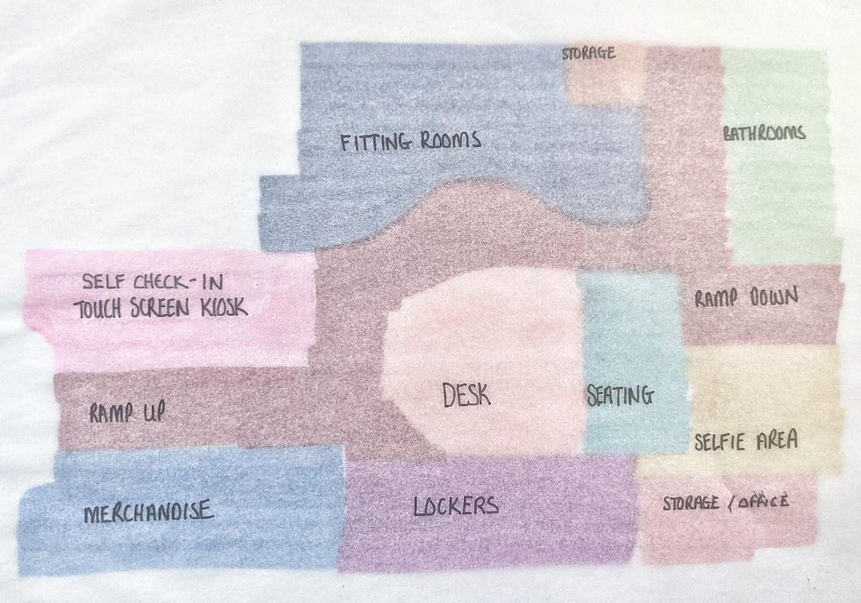COMMERCIAL DESIGN 03. SEATING AREA STORAGE / OFFICE RAMP DOWN 15’ SELFIE WALL