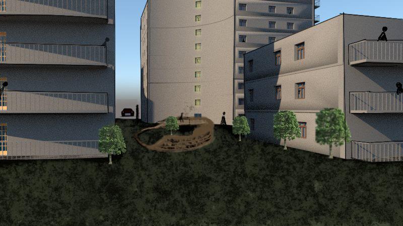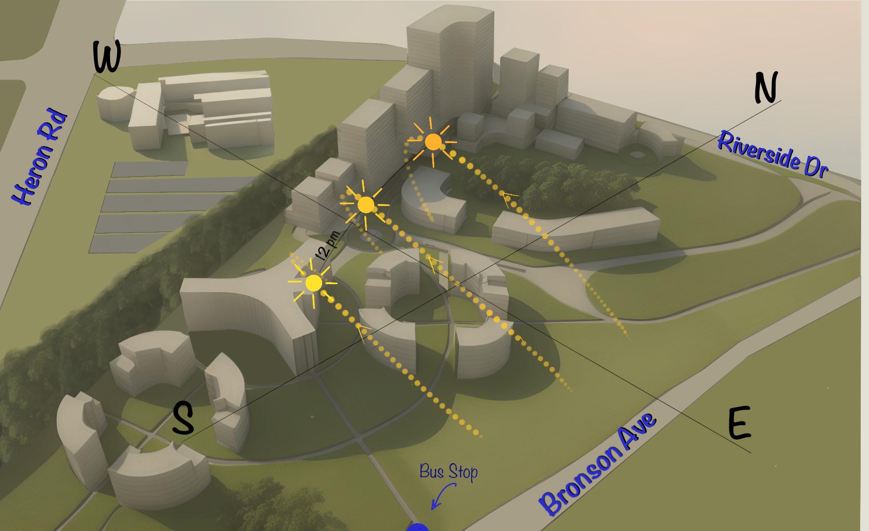 Given the close proximity to Carleton University, this project is mainly targeted towards students. The simple landscaping divides the open spaces allowing for more specific uses that can be curated by the inhabitants of each building.