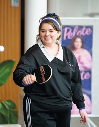 Raquette à la main, c’est autour de la table de ping-pong que l’animateur Philippe Lacroix rencontre des artistes de passage au Théâtre Alphonse-Desjardins pour une courte entrevue avant leur spectacle. Sa plus récente adversaire est l’humoriste Michelle Desrochers — ou Matante Mitch, pour les intimes.