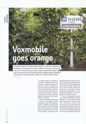 The latest newcomer into the mobile telephone market in Luxembourg, Voxmobile, had acquired 20% of the market in three years. But to grow even more, it had to be supported by a large international network. That is now done after the acquisition by the Belgian operator Mobistar (Orange/France telecom group) of 90% of its capital for €80 million. Photos: David Laurent