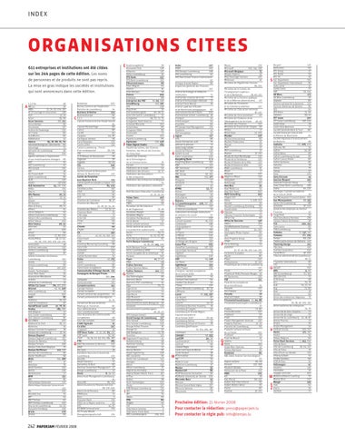 Organisations citees 611 entreprises et institutions ont été citées sur les 244 pages de cette édition. Les noms de personnes et de produits ne sont pas repris. La mise en gras indique les sociétés et institutions qui sont annonceurs dans cette édition. 1,2,3 Go