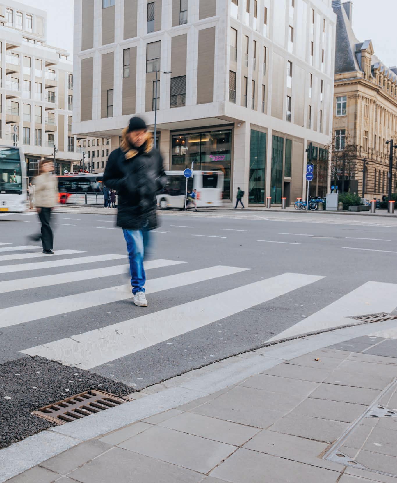 Chaque jour, les 119 collaborateurs du Service Voirie entretiennent l’espace public. Every day, the 119 employees of the Service Voirie maintain public space.