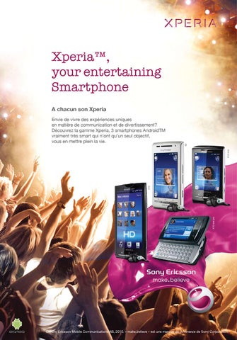 Envie de vivre des expĂ©riences uniques ommunicatio et de divertissement? en matiĂšre de communication mme Xperia, 3 smartphones Android DĂ©couvrez la gamme AndroidTM mart qui nâont quâun seul objectif, ctif, vraiment trĂšs smart vous en mettre plein la vie.